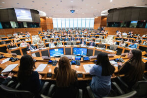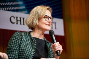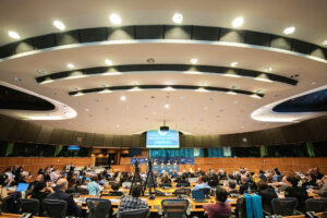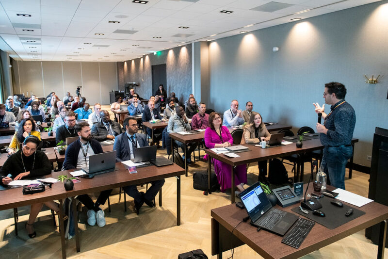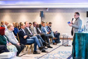 A virtual live event features only remote speakers and a remote audience. In-person means all the speakers are at the same venue, on the same stage, with the audience or not. Hybrid is a mix, usually we have a group of speakers on stage and a few people joining remotely.